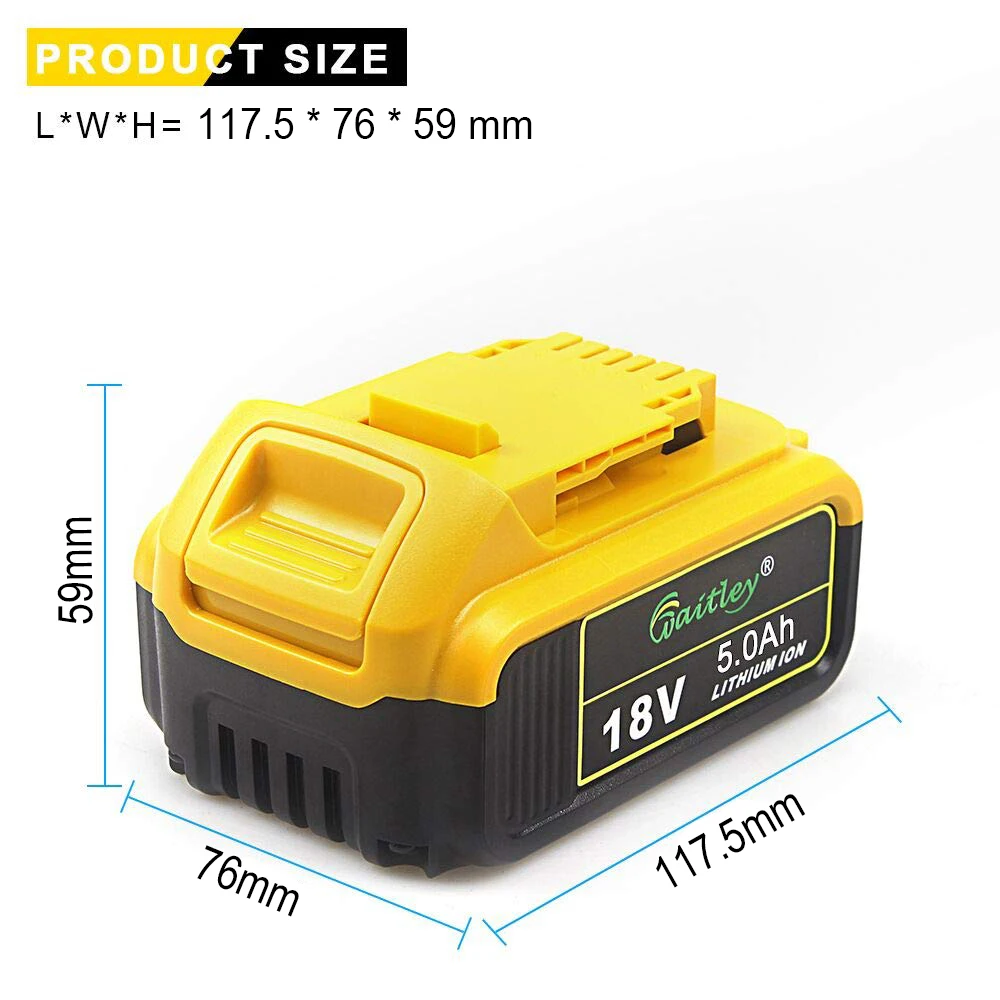 Best Product Waitley 18V 5.0Ah MAX XR Battery power tool Replacement for DeWalt DCB184 DCB181 DCB182 DCB200 20V