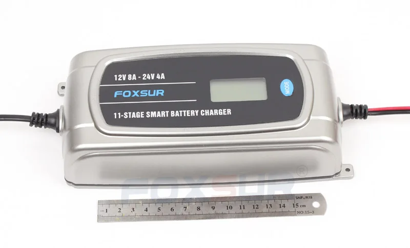 Best Seller FOXSUR 12V 24V 8A Fully Automatic Battery Charger with LCD Display Waterproof Truck Car Battery Cha