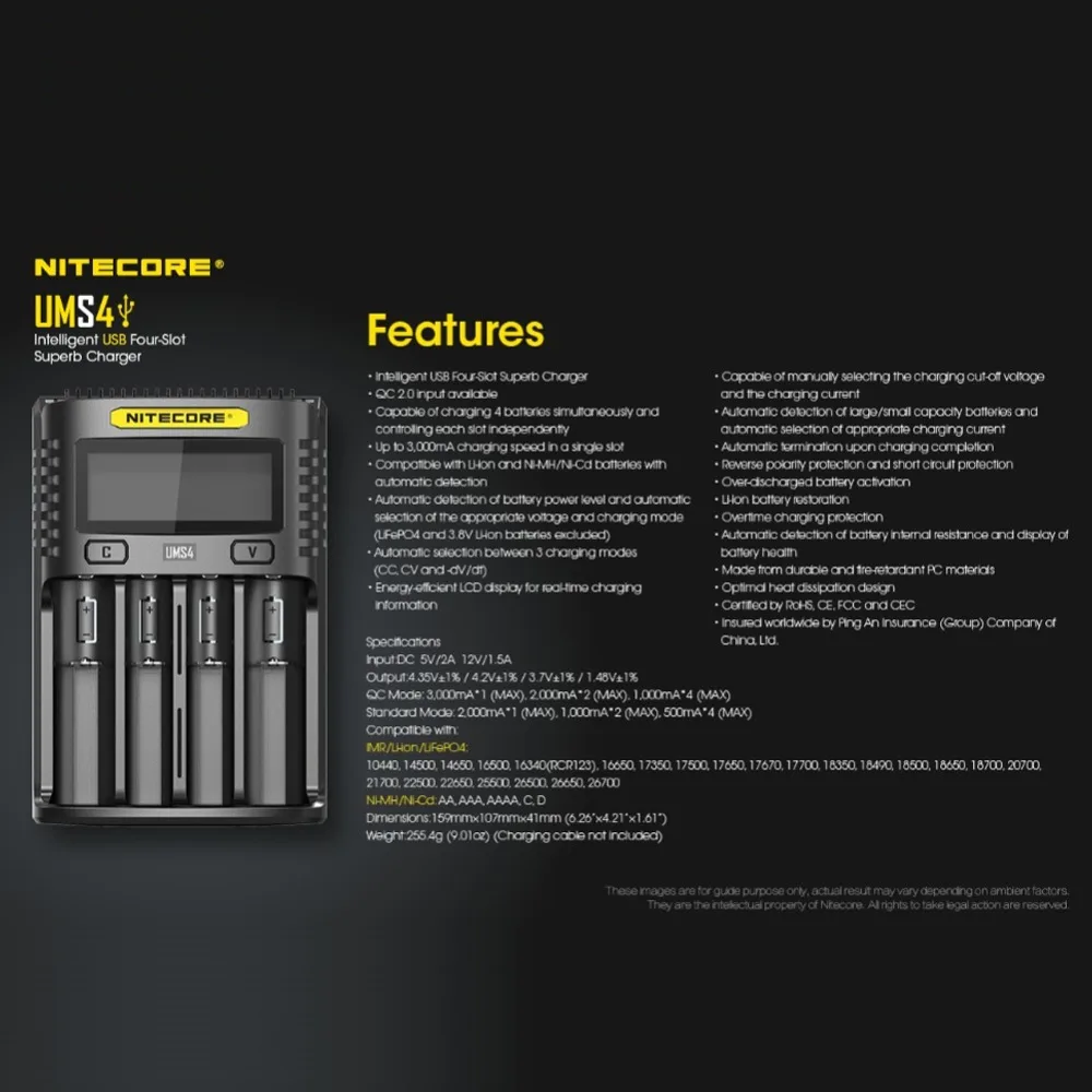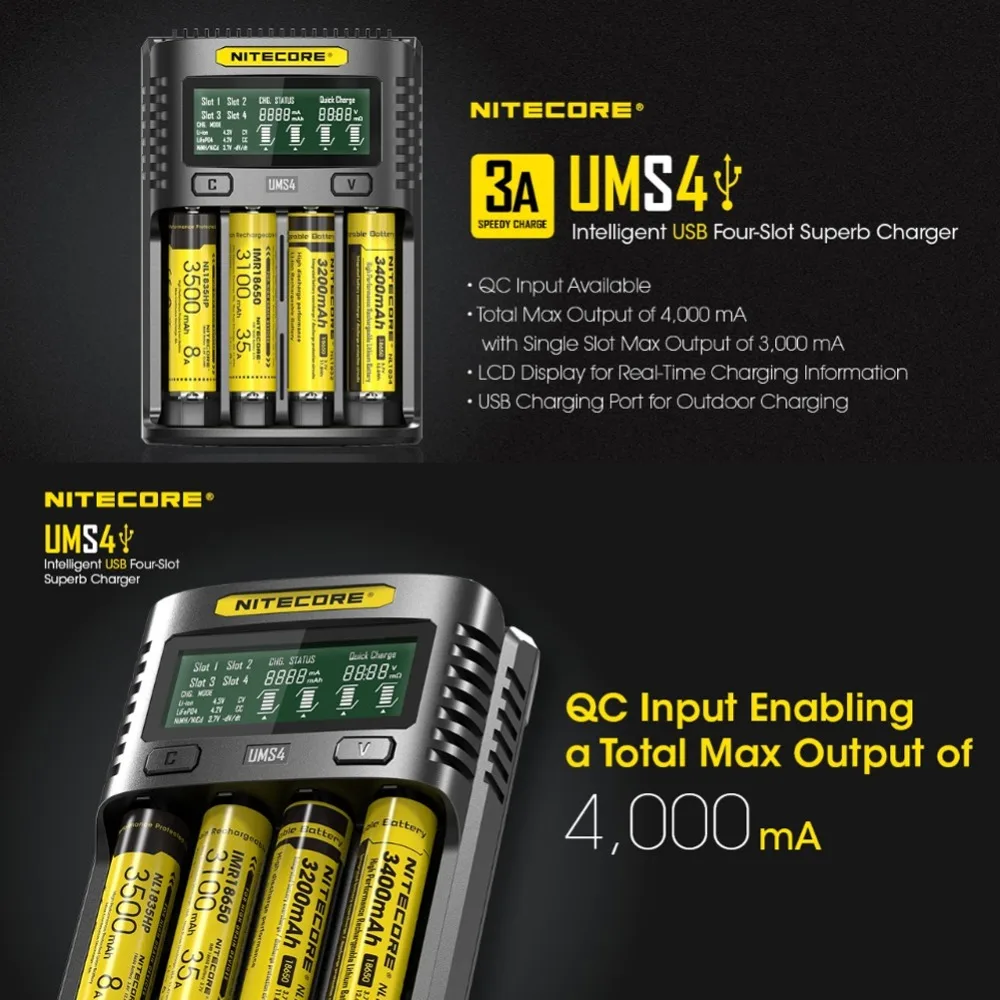 Best Product Hot NITECORE UMS4 UMS2 SC4 QC Battery Charger Intelligent Circuitry Global Insurance li-ion AA AAA