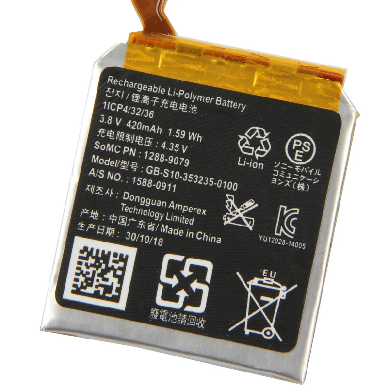 Hot Sale Original Replacement Smart Watch Battery GB-S10-353235-0100 For SONY GB-S10 SmartWatch 3 SW3 SWR50
