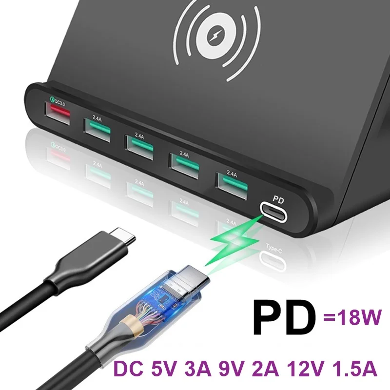 Tongdaytech Multi 8 Port Lcd USB Qi Wireless Charger For Iphone X 8 Plus Quick Charge 3.0 Fast Charger For Samsung S10 S9 Xiaomi