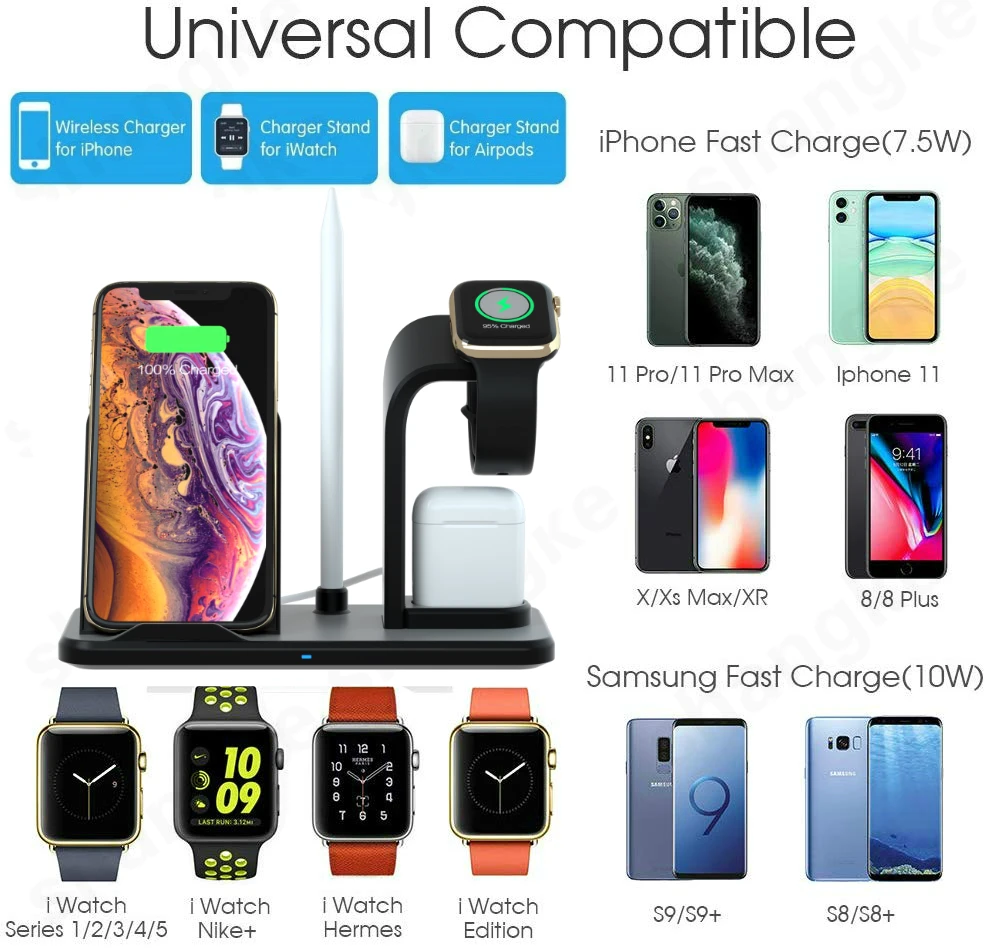 Wireless Charger Stand for iPhone AirPods Apple Watch, Charge Dock Station Charger for Apple Watch Series 5/4/3/2 iPhone 11 X XS