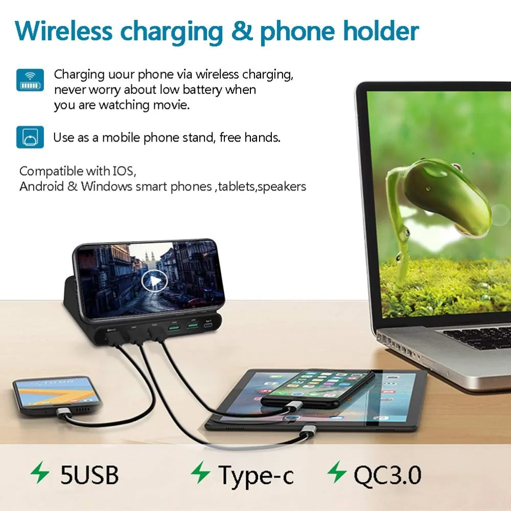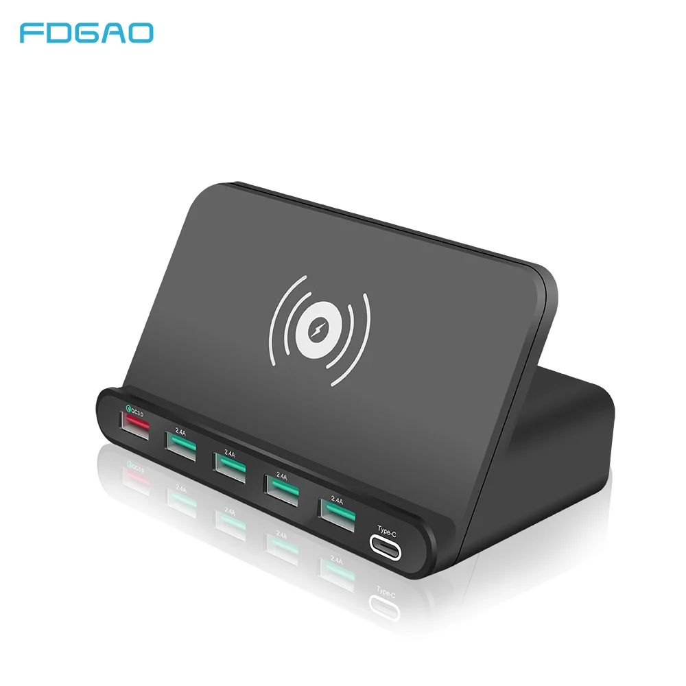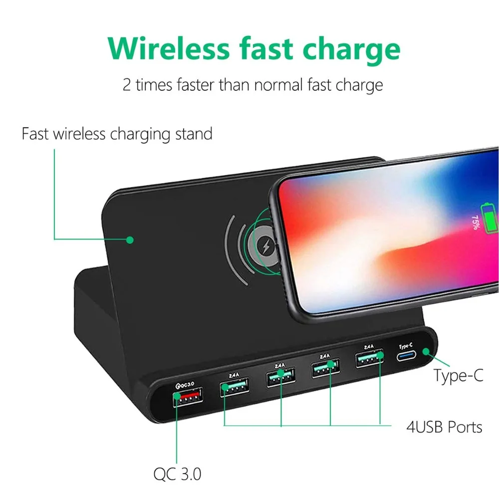QI 10W Wireless USB Charger Quick Charge 3.0 PD Type C Multi HUB Fast Charging Station Adapter for iPhone iPad Sumsung Xiaomi MI