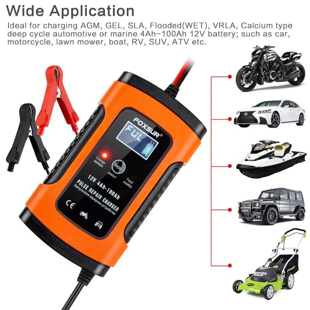 Best Product Full Automatic Car Battery Charger 110V to 220V To 12V 6A Intelligent Fast Power Charging Wet Dry L