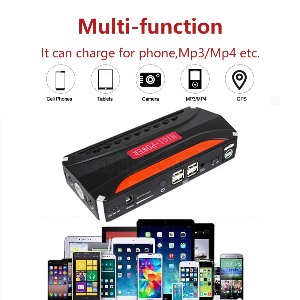 GKFLY Emergency Car Jump Starter 12V Portable Power Bank Battery Charger Booster Starting Cable Device Diesel petrol Auto LED