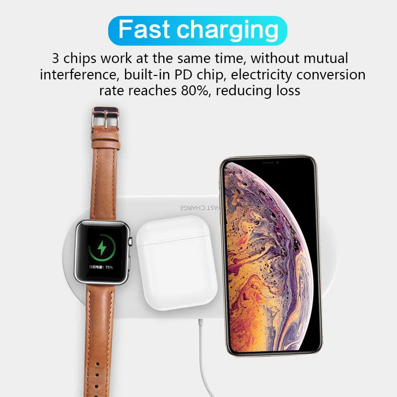 Big Promo 3 in 1 Portable Wireless Charger for iPhone 11 pro Samsung S8 Fast Wireless Charging Pad for Apple