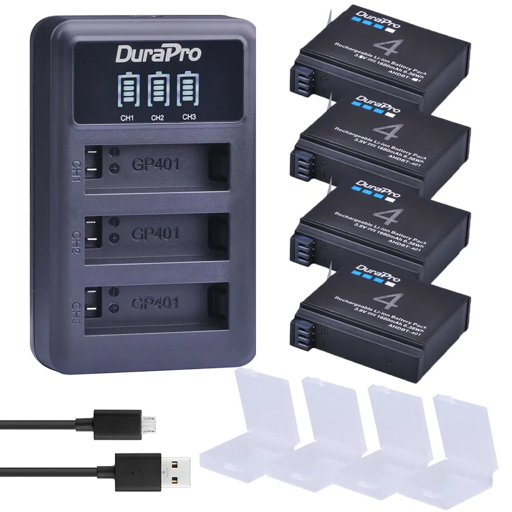4pc 1250mAh AHDBT-301 AHDBT-302 Rechargeable Battery + LCD USB Charger for AHDBT 301 302 Gopro Hero 3 Hero 3+ Go Pro Hero 3