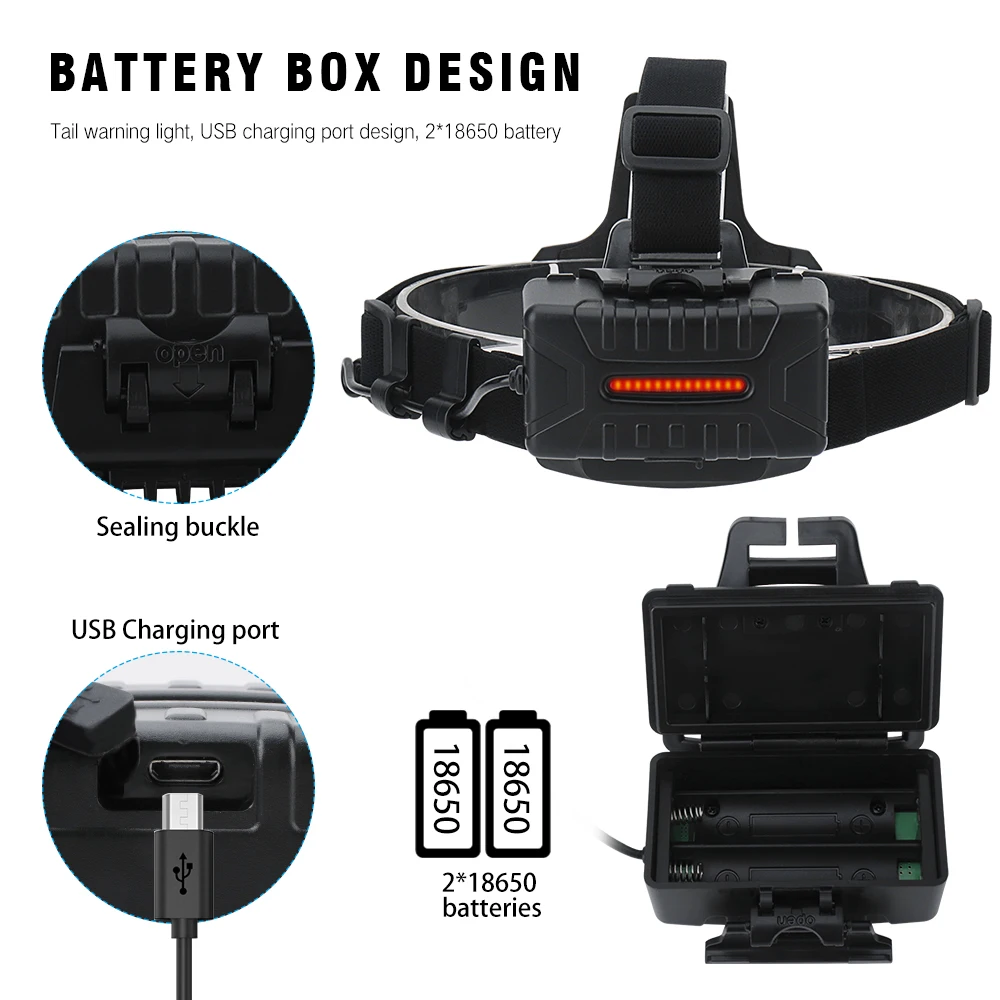 BORUiT H02 XPH50 LED Headlamp Zoomable 3-Mode Headlight USB Charger Head Torch Hunting Flashlight 18650 Battery