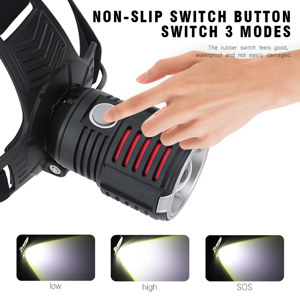 BORUiT XHP70.2 LED Headlamp 3-Mode Zoom Headlight 5000LM High Power Flashlight 18650 Rechargeable Camping Hunting Head Torch