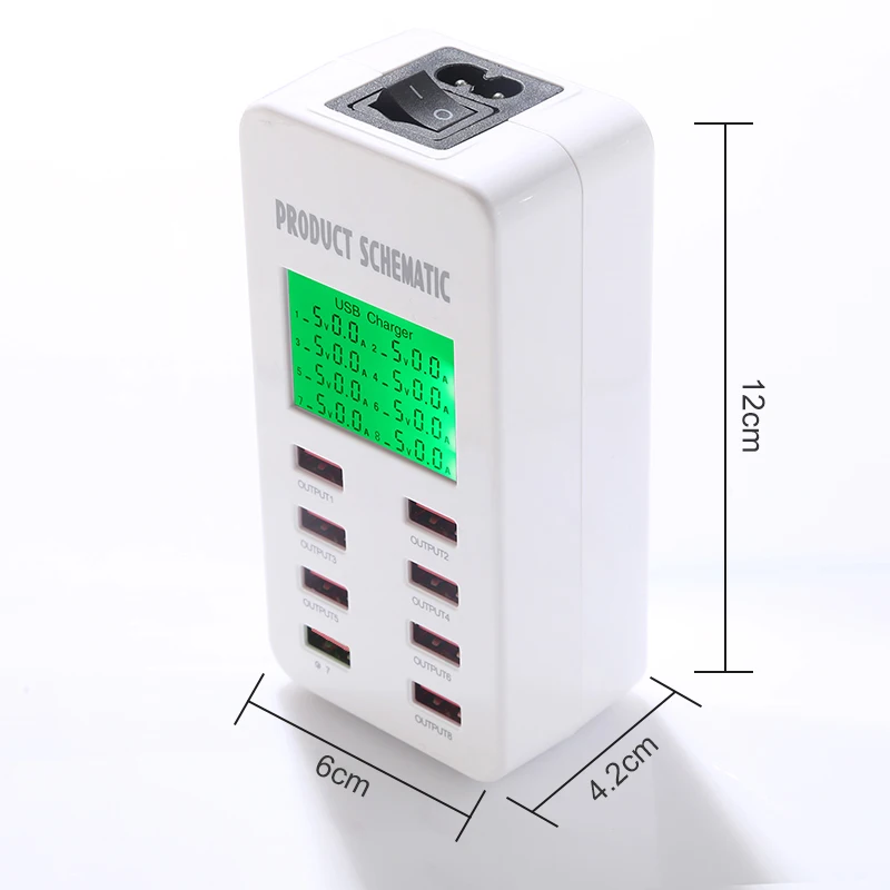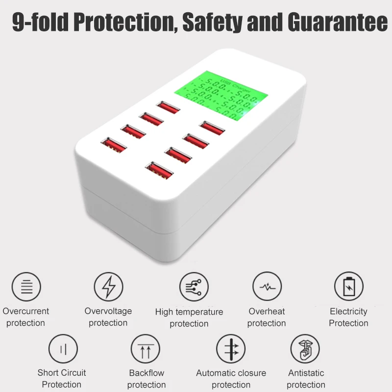 ce rohs 6 Ports USB Charger Smart Charging Multi-Port Travel Charger LCD Digital Display Station Multi-Port Charging Plug US