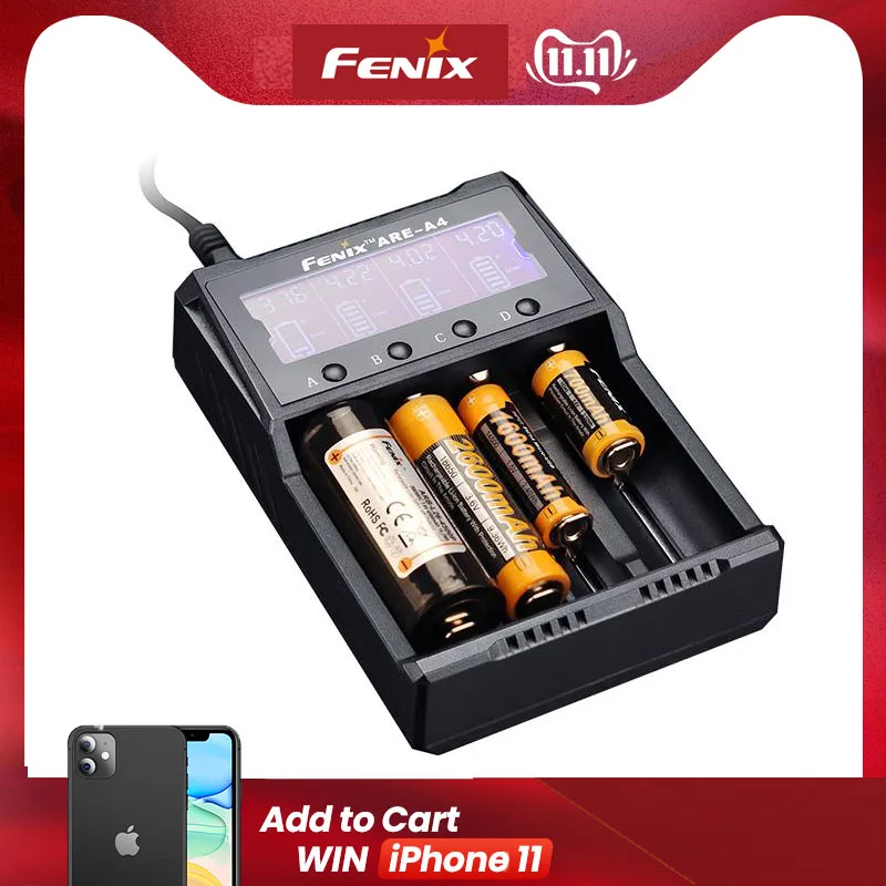 Big Promo 2019 Fenix ARE-A4 quad channel smart charger compatible with types of Li-ion and Ni-MH/Ni-Cd batte