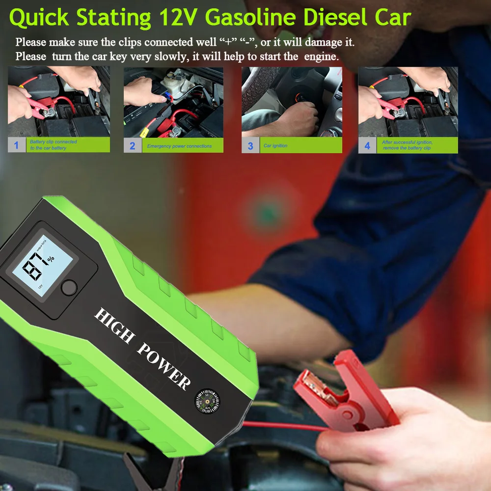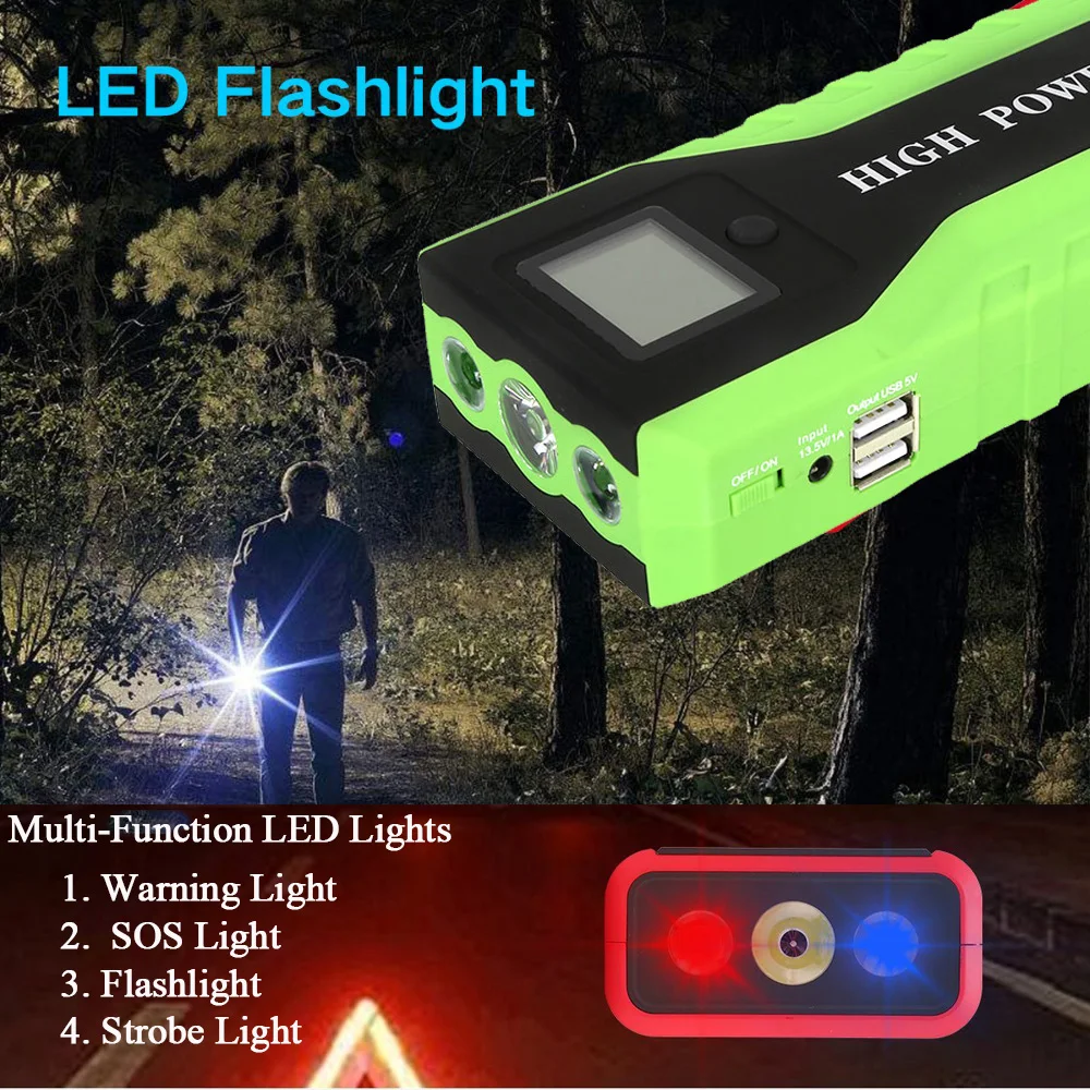 GKFLY Emergency 20000mAh Starting Device 12V 400A Car Battery Charger Petrol Diesel Car Jump Starter Power Bank Car Charger LED