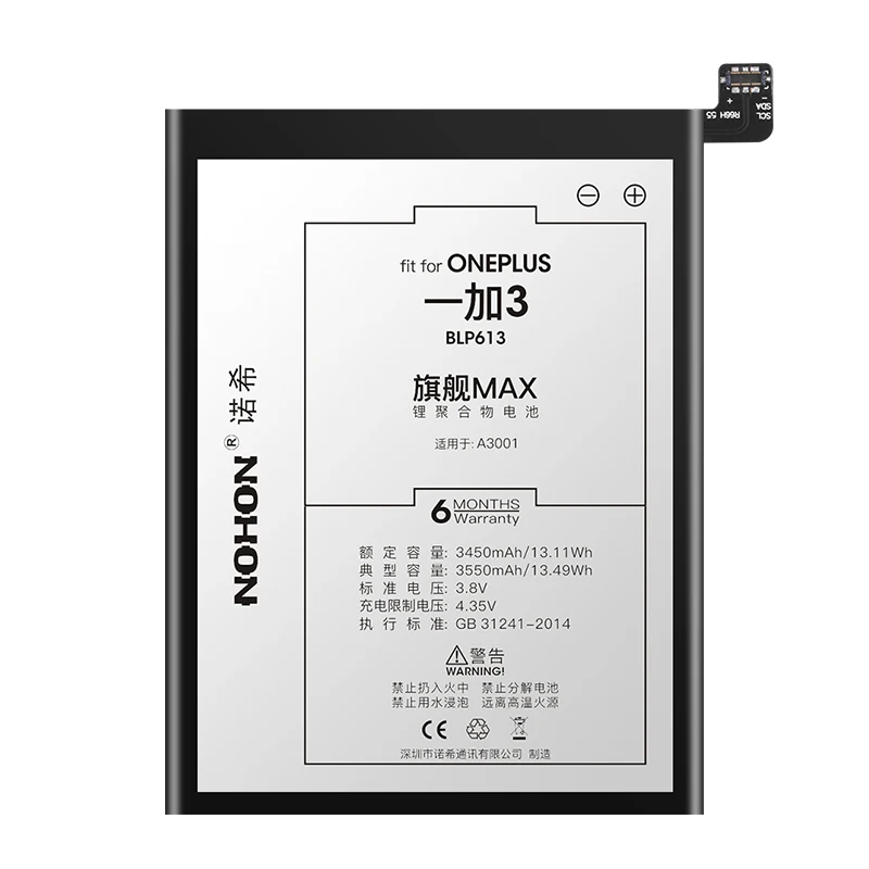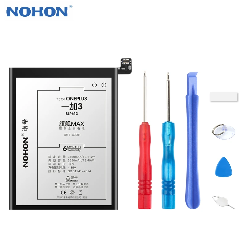 Hot Sale Nohon Phone Battery for Oneplus 3 3T 5 5T High Capacity Replacement Battery BLP613 BLP633 BLP637 Ba